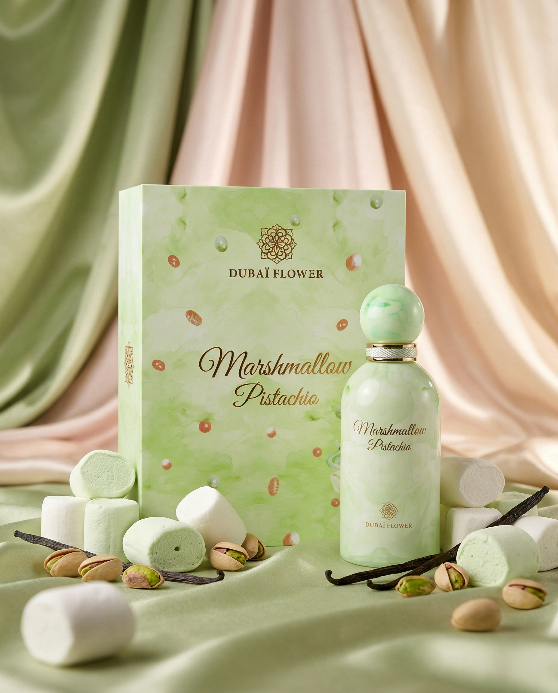 MARSHMALLOW PISTACHIO est une véritable gourmandise parfumée, une création riche, crémeuse et irrésistiblement addictive qui évoque l’univers des desserts les plus raffinés.